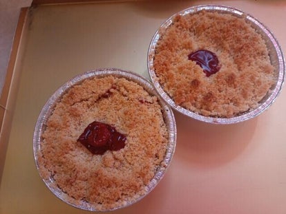 This is a proper, Home Made RED CHERRY FILLING FRUIT CRUMBLE.