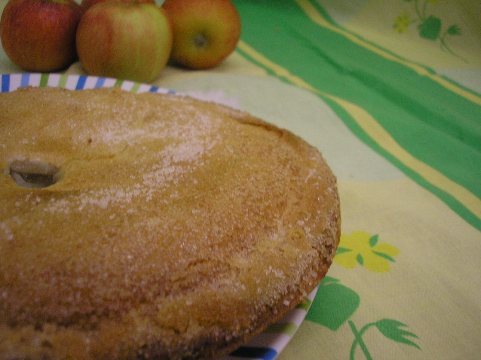 we use our excellent quality, home made pastry, with some sugar sprinkled on top. We use chopped Bramley Apple.